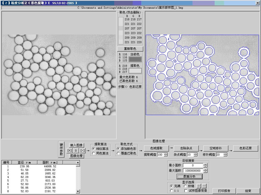 本軟件以用戶需求為依據,開發出了專用的圖像分析軟件功能模塊,用戶可在本軟件的幫助下,完成粒度圖像分析工作。