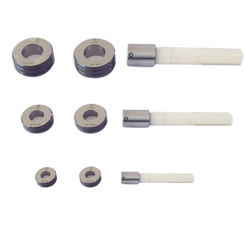 測量頭的標準件是上、下限校對規(環規)各一個,用來校正量儀的倍率。測量時,將測量頭插入被測孔內,量儀指示的數值為被測孔內徑的誤差值。如果將測量頭沿被測孔作軸向移動,量儀指示的差值為孔在移動范圍內的錐度。如果測量頭在被測孔內作相對轉動,則可測得被測孔的圓度。